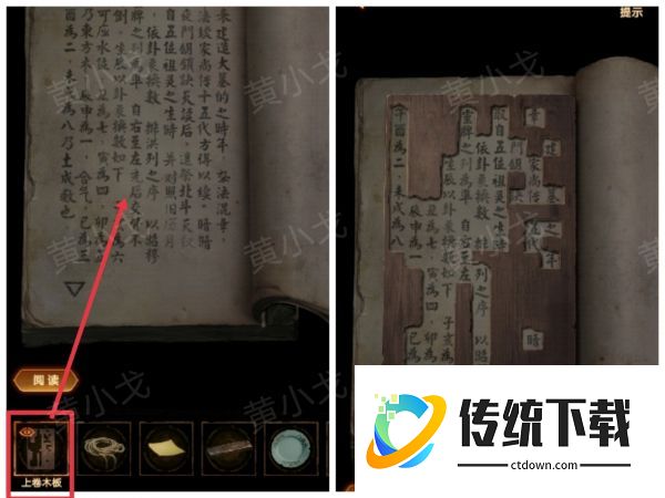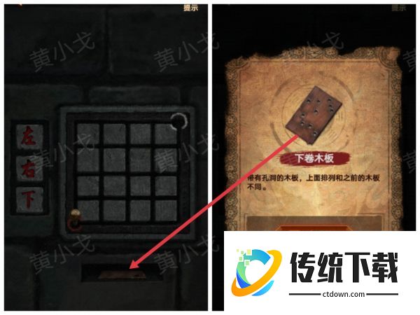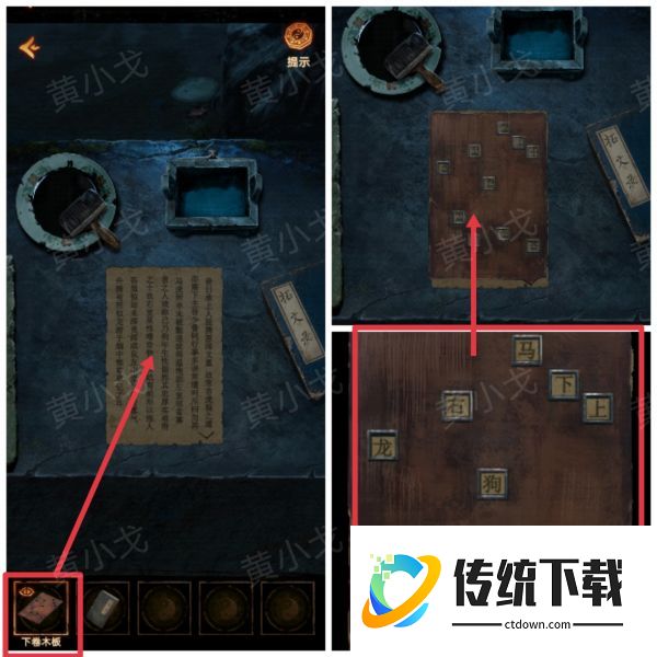 32、放上【下卷木板】,查看木板,获得线索