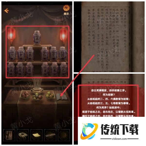 10、查看供桌上的书,获得灵牌摆放顺序