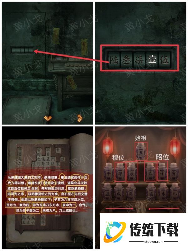 解谜思路:①暗门钥诀取自五位祖灵之生时,依卦象换数(五位包括:始祖、始祖起的二三四五,即丑卯辰巳子)