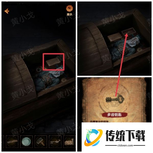 15、打开棺材里的盒子,获得【多齿钥匙】