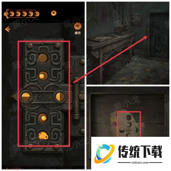 6、点击左侧门上的机关,完成小游戏,打开门