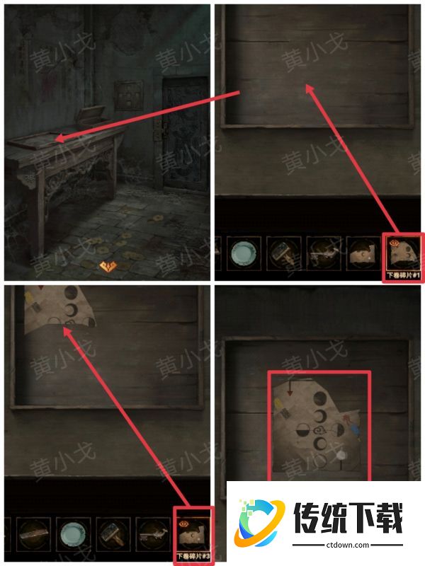17、把【下卷碎片1】和【下卷碎片3】放到桌子上的木托盘中,拼合起来,获得线索