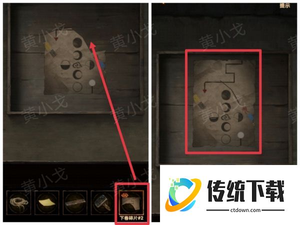 22、把【下卷碎片2】放到木托盘上,与另两张碎片拼合起来,获得线索
