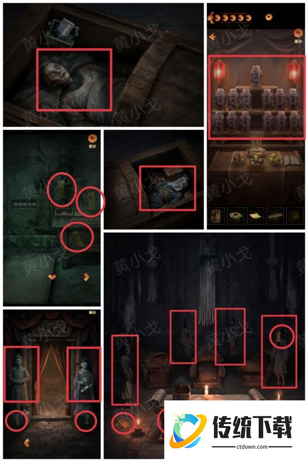 缠重山2冥玉钞第五章:绝路怎么过,拾取石床上的【麻绳】,查看武器架,获得线索:武器形状及红线数量,[右殿]内拾取石桌上的【黄纸】,注意场景中的符纸和瓷偶的数量:符纸-5、瓷偶-4。