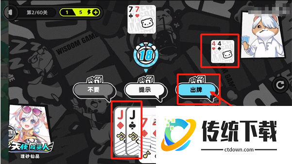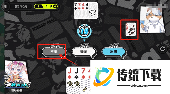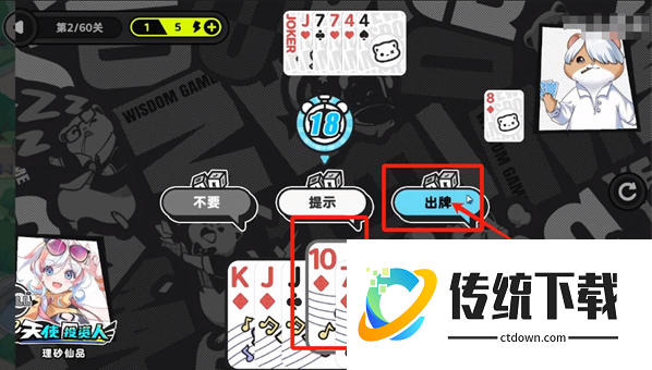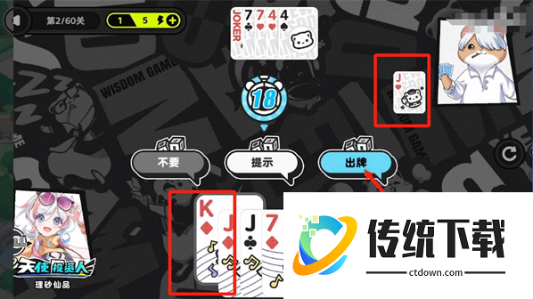 3、对面为了压制单10,会打出J,这时候玩家选择继续压制出K。