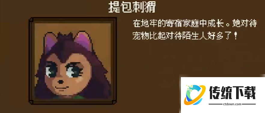 再就是提包刺猬,刺猬的解锁方式比较特殊,首先需要击败第一区域的Boss之后,在营地和刺猬触发对话接取挑战。挑战一共分为三个阶段,需要玩家按顺序依次完成才可以。挑战一为“锐爪试炼”:在1-2层达成15连击,建议使用高速武器如匕首来完成。挑战二“尖刺壁垒”在2-1层无伤通关,携带护盾和回血道具也可轻松完成。挑战三“荆棘馈礼”:在2-3层收集8个荆棘类道具。就是捡那种带刺图标的物品就行。完成所有挑战后会营地和刺猬对话就能永久解锁了。刺猬是典型的反伤坦克,核心技能"荆棘甲壳"能将所受伤害的30%返还给攻击者。搭配"腐蚀尖刺"(攻击附加中毒)与"根须缠绕"(地形控场),这套方法非常适合打持久战。