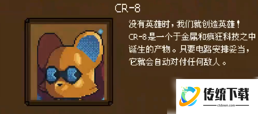 寄居蟹“波切特”则是需要向第三区域“沼泽集市”中随机刷新的贝壳商人支付三百金币来解锁,解锁起来相对比较简单的一个角色。而且寄居蟹拥有模块化背包,可以通过装备不同贝壳获得对应技能。比如"巨岩贝壳"可以获得等同护甲值的反伤、"珊瑚贝壳"每回合能恢复相邻友军的生命值。这个角色需要玩家具备优秀的经济运营能力与装备适配思维,属于高上限的策略型角色。因此大家注意带好充足的金币进入沼泽集市。如果金币不够商人消失需要重新刷出来。然后是机器人“CR-8”。需要在废弃工厂完成前置任务,然后在3-2弄到电路核心。随后在工厂底层4-4激活核心开启隐藏关。击败废铁君王后自动加入。