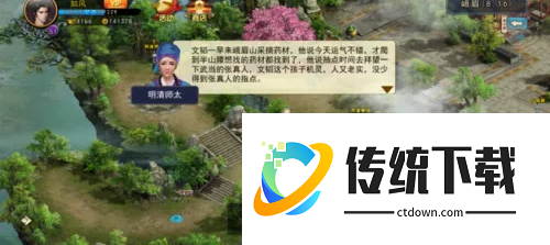 前往峨眉山场景8.16坐标点位置跟明清师太进行对话,选择【文韬】选项,这时明清师太会讲述文韬前往武当山拜望张真人的信息。