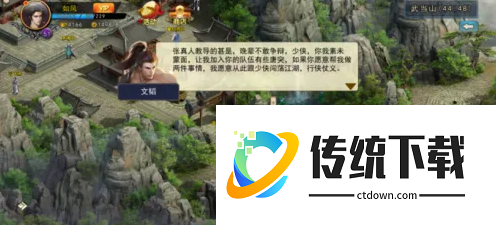 前往武当山场景的44.48坐标点位置跟文韬进行对话,选择【邀请加入】选项,这时文韬会提出需要帮他完成两件事情。