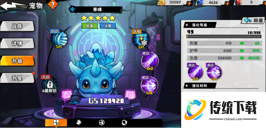 主线推进至7-5关卡后,宠物系统正式解锁。派遣功能可自动产出资源,资源投放应聚焦于主战宠培养。选宠需契合角色特性:妮娅优选提升输出效率的牙牙;布耶尔适配持续护盾恢复的大眼;欧利昂则受益于增强召唤物伤害的熔火。若获取五星品质宠物,可直接作为主力培养。特别提示:宠物等级未达50级前,支持一键回退,全额返还全部培养材料,便于灵活调整阵容配置。