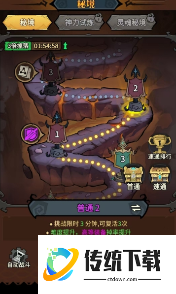 此外,无尽探险队设计了疲劳时间机制,玩家每天只有两个小时的时间来参与关卡挑战,若所剩的疲劳时间超过三十分钟,可在关卡里获得三倍掉落的效果,疲劳时间不足三十分钟时,掉落倍率会恢复正常。一旦疲劳时间全部用完,玩家们将无法再进入关卡进行挑战,且疲劳时间会在每天凌晨五点重置。所以各位在用完每天的疲劳时间后,可去时空秘境中体验游戏所设计的一些不需要消耗疲劳时间的玩法,它们也会为玩家带来很丰厚的奖励。