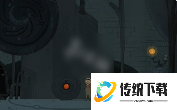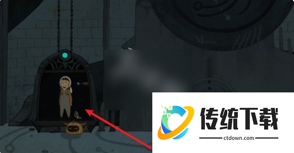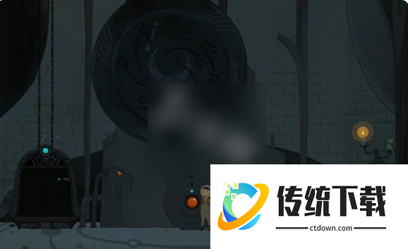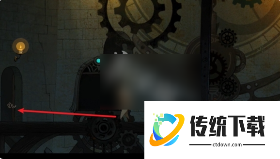 8、小女孩回到楼下控制右侧装置将两个灯都升起。