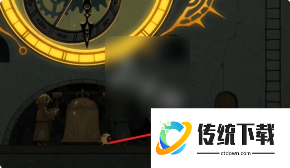 9、让小女孩操作2楼的装置,将时针和分针转至一开始蓝色图所指示的图案。