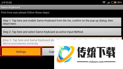 第五步:然后点击手机上的返回按钮,返回Game Keyboard的首页,点击右下角的Customize Gamepad。