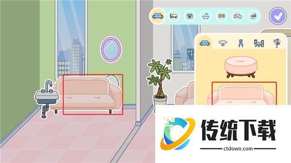 4、里面为用户提供了非常丰富的家居,如沙发、桌子、洗手台、床、浴缸等等,玩家可以自己选择你想要的家居;
