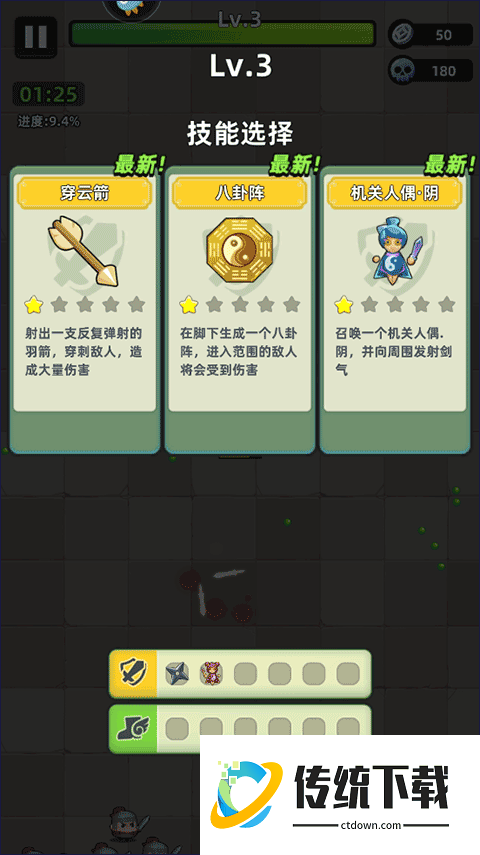 2、要想后期无敌前期在选择主技能的时候绝对要慎重的选择,如果开局没有你需要的技能可以刷新一下或者选择一个你觉得还不错技能先用着