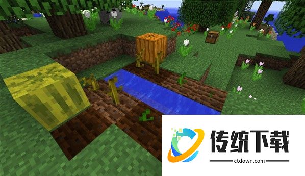 不过,在创建世界的时候,有可能会生成天然的西瓜与南瓜,我们可以利用这些天然生成的瓜来为我们的作物取种。