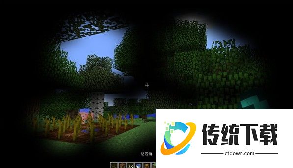 我们只需要像装备头盔一样将南瓜装备上就可以享受这个功能了,但是视野会受到一定的影响:你只能看到南瓜被雕刻的部分,剩下的部分会被黑色的阴影阻挡住。