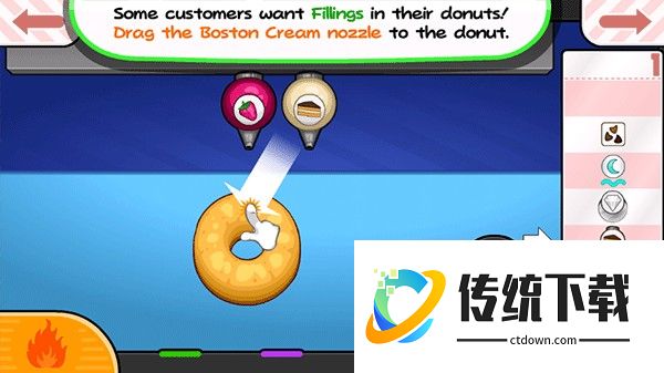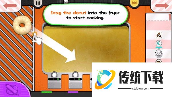 2、体验十分欢乐的游戏挑战,卡通风格的游戏画面,一起制作美味的甜甜圈吧。