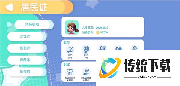 2、屏幕右侧的居民证可查看角色当前的能力等级与职业等级,努力提升自己吧!