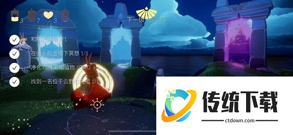 [已失效] 游戏图中被螃蟹或皮皮虾撞击掉落光之翼时,可在光之翼破裂之前点击右上角返回遇境这种方式避免丢失光之翼。若对自己手速不自信,可直接退出游戏再登录。(ps:被撞击掉落丢失的光之翼会随机返回某个地图收集点,可重新收集找回)