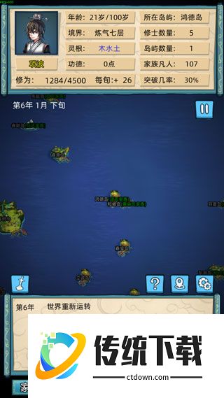 2、进地图:选择周围有很多微型岛屿的地图,有修真世家最好,没有也不影响。如果周围都是大岛就重开吧,反正0功德开局不慌,多看一分钟广告。进入岛屿,有一个鱼塘和一个灵泉最好,没有就修炼慢一点,没有可以重开,和前面岛外岛内环境看完后一起重开。