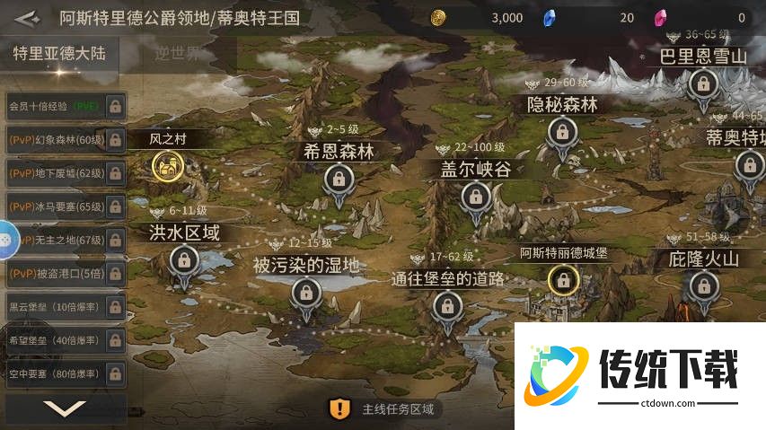 2、然后前期主要是升级,想要升级的话的可以通过主线任务(自动寻路,哈哈),主要目的还是让玩家熟悉这个游戏,做主线一般一天就能到70级了,如果想跳过这个过程,可以直接到会员地图挂机升级。