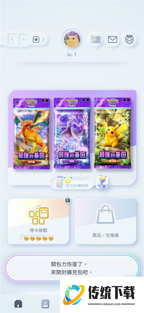 玩家可以享受收集的乐趣,每天可以免费开两个补充包。收集不同类型的宝可梦卡牌,包括带有怀旧插画的经典卡牌,以及本游戏独有的全新卡牌!
