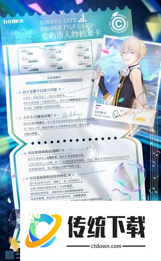 1、精美的二次元风格,带你沉浸式体验娱乐圈的精彩,超多角色将会与你发生各种故事。