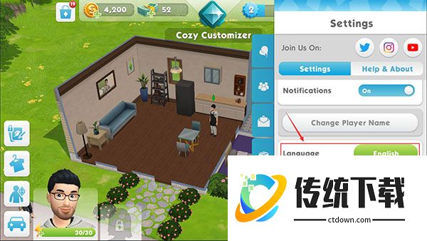 模拟人生移动版满级版怎么设置中文
