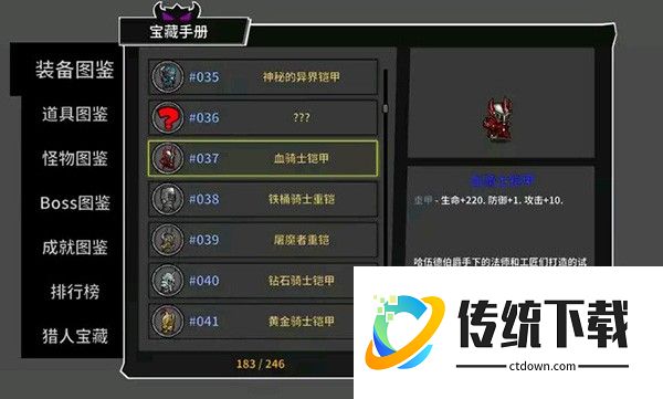 点评:从属性上看是极为畸形的铠甲,但是加血量方面血骑士无人能敌,如果自身道具属性加防御不低的情况下血骑士是很好的选择,选择血骑士血量有可能升到400点以上。