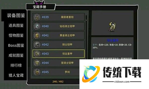 点评:中甲之中属性加成最多的防具,虽然是中甲但是血量和防御的加成都不弱于重甲,唯一的缺陷就是攻击加成少了一点。