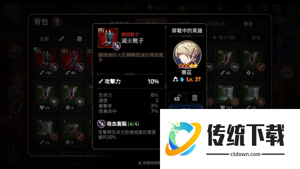 2、深渊吸血装备:这一套装备的强度不算是顶尖,不过作为过渡用已经够了,不歪强化的话也能用很长一段时间。