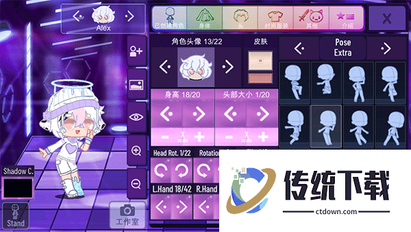 3.提供了丰富的自定义选项,玩家可以自由搭配角色的外观、服装和动作,几乎不受任何限制。