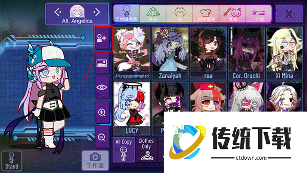 1、在工作室中可在屏幕上的任意位置添加角色。
