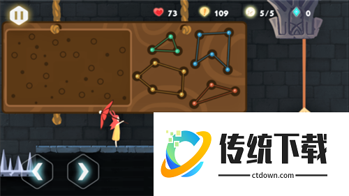 2、飞行跑酷:带着你的小红伞飞起来吧!你可以在飞行过程中收集各种水晶,它们是你能够开通下一篇章的重要道具;
