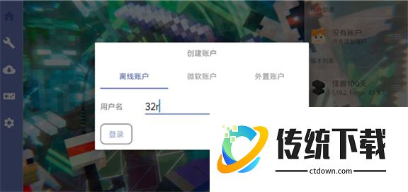 4、选择离线账户登录,用户名请用数字或者字母;