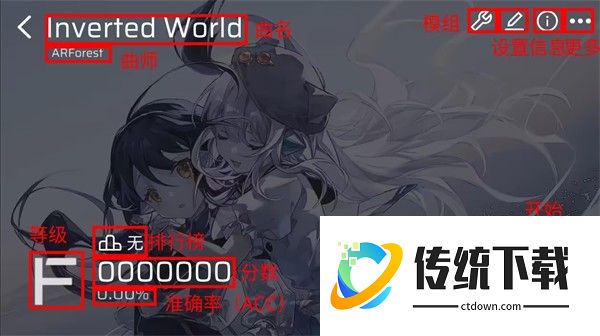 点击右上角“i”图标,进入谱面信息界面,在这里,你可以看到该谱面的以下内容: