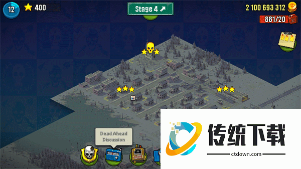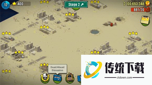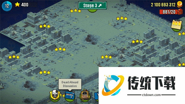 2、第二大关,难度上来了,跑尸增多了,拿三星有困难,需要记住僵尸的路线,掌握对投弹兵的使用方法,实在过不去就卖车(损失巴士血量,让卡尔杀僵尸)。