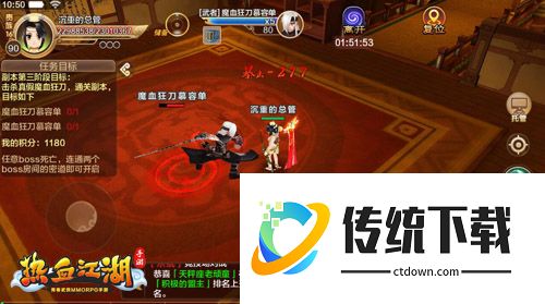 热血江湖手游怀旧版手机版是一款受众多玩家喜爱的MMORPG武侠手游,游戏中不仅有丰富的主线任务和支线任务,还有各种挑战副本和活动等待玩家去探索。通过完成任务和挑战,玩家可以不断提升自己的实力,收集稀有装备,打造属于自己的强大角色。一起上线,来玩游戏吧~