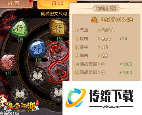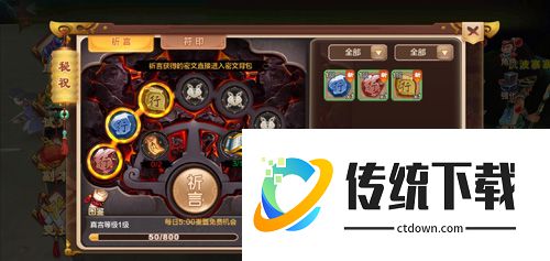 在江湖中行走,从小白到侠客是轻而易举,但是要从普通侠客进阶到大师级绝非易事。后期提升每一步都难如登天,为了让强者更强,91级以上玩家都可进入秘祝系统收集密文。密文收集只是提升的第一布,只有将密文放入符印中,才能激活相应的属性和效果。免费祈言机会,每日一次,免费次数消耗后,也可使用召言符和悟道宝卷继续祈言。