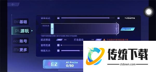 4、在“游玩”界面,可以设置面谱的延迟速度以及音标流速大小
