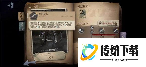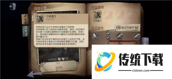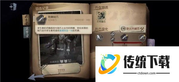 首先,小编先为玩家们介绍新版鹿头的技能。相较于旧版鹿头,新版鹿头在0阶新增了一个技能陷阱。鹿头可以在原地放置一个夹子,如果被求生者踩到会禁锢求生者8秒,求生者也可以拆除布置在空地上的夹子,也可以帮助被夹子困住的队友解脱束缚,但脱离禁锢的求生者在5秒内会被鹿头看见,且不会再受到其他陷阱的禁锢。