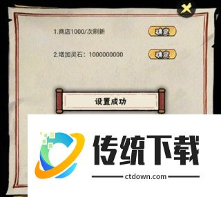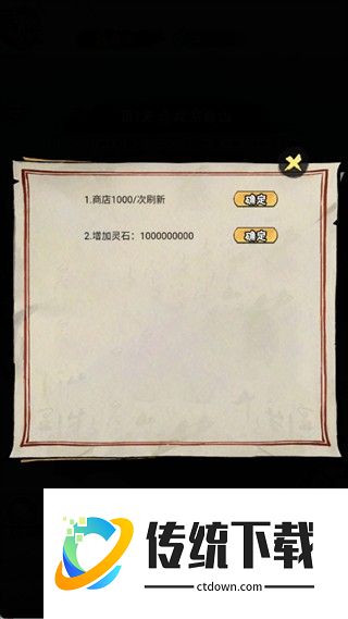 2、在GM菜单中,可选择如【商店刷新1000次】、【增加灵石100000000】等功能,点击对应选项并确认即可生效。