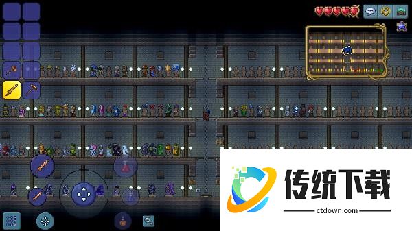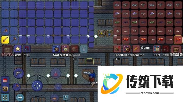 地面惬意的生活让人流连忘返。但是,黑暗的地下才是真正刺激的地方。一些必需品玩家可以在地表找到,但稀有的材料只会出现在地下。地下世界就像是一部传统的2D动作游戏。从巨型史莱姆、骷髅、蠕虫到各种虫子,相当丰富多彩。