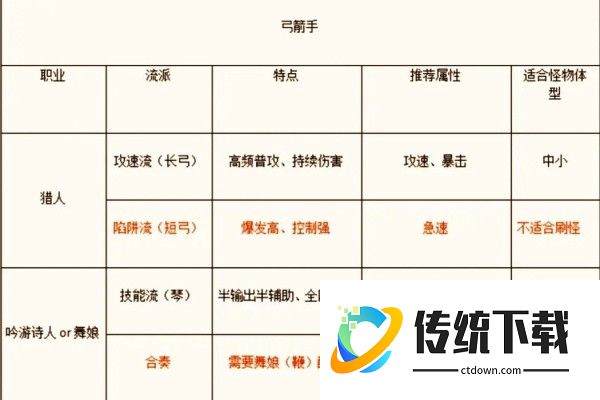 很热门的职业,选的人真的太多了,可能是大家都想输出吧,对金武器需求很高,养成成本都偏高,而且带来的收益比较一般,硬要养成可以选择长弓猎人,输出伤害特别炸,适合反复风筝