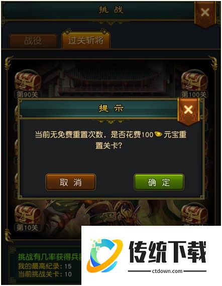 1. 如果玩家觉得当前关卡已无法通过,但是又想继续获得奖励,可以点击“重置”按钮可以重置当前通关进度,从头开始挑战。