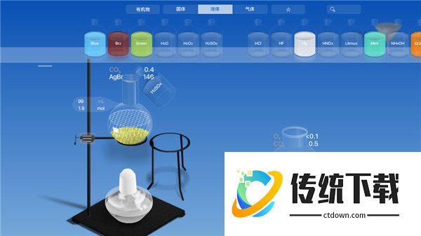 在chemist中,你可以倾倒药剂、用玻璃棒来搅拌、用酒精灯来加热等等。真实的体验,简约的操作。