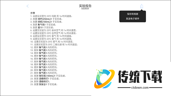 3、自动生成实验报告。完成实验之后,可以自动生成实验报告,记录所有的实验步骤,并且可以直接将其保存为图片或者以电子邮件的形式发送。