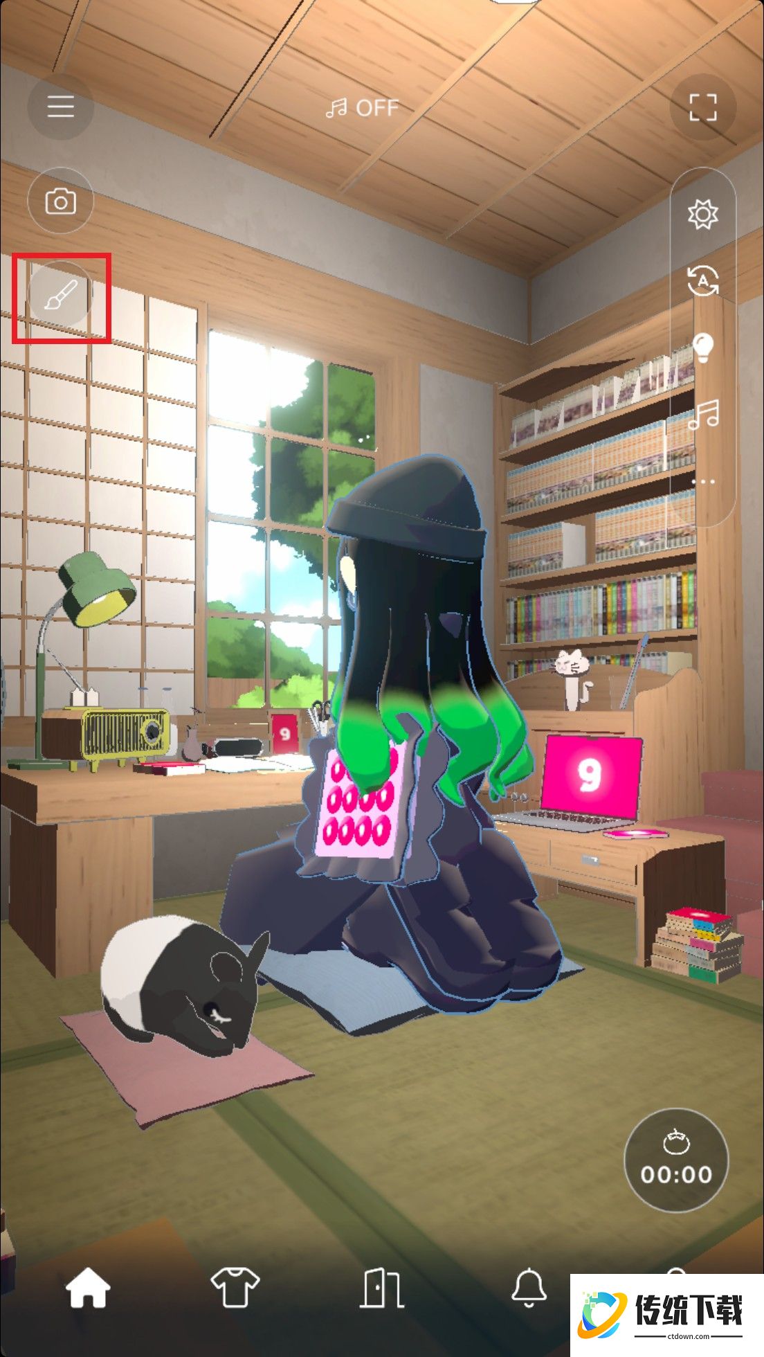 3、接下来,从五种不同风格的房间中挑选一个喜欢的场景,正式进入游戏后,你会看到角色正静坐在桌前。
